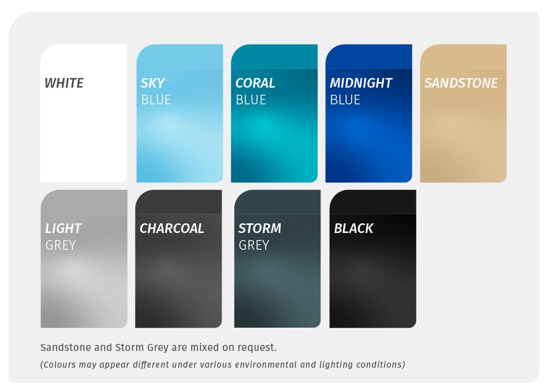 spheres (offered free of charge) can be applied on the step areas to create a non-slip finish.